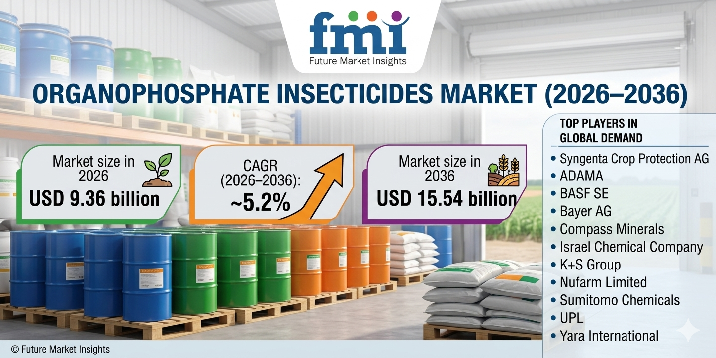 NEWARK, DE, UNITED STATES, April 1, 2026 /EINPresswire.com/ -- The global Organophosphate Insecticides Market is valued at USD 9.36 billion in 2026 and is projected to reach USD 15.54 billion by 2036, expanding at a CAGR of 5.2% from 2026 to 2036. Growth is driven by sustained agricultural demand in developing regions, increasing pest resistance to alternative chemistries, and continued reliance on cost-effective broad-spectrum insecticides across large-scale farming systems.